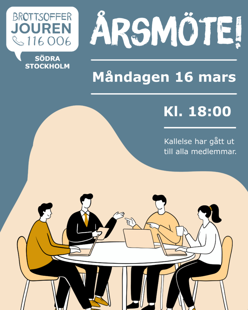 Brottsofferjouren Södra Stockholm välkomnar samtliga medlemmar till årets föreningsstämma!